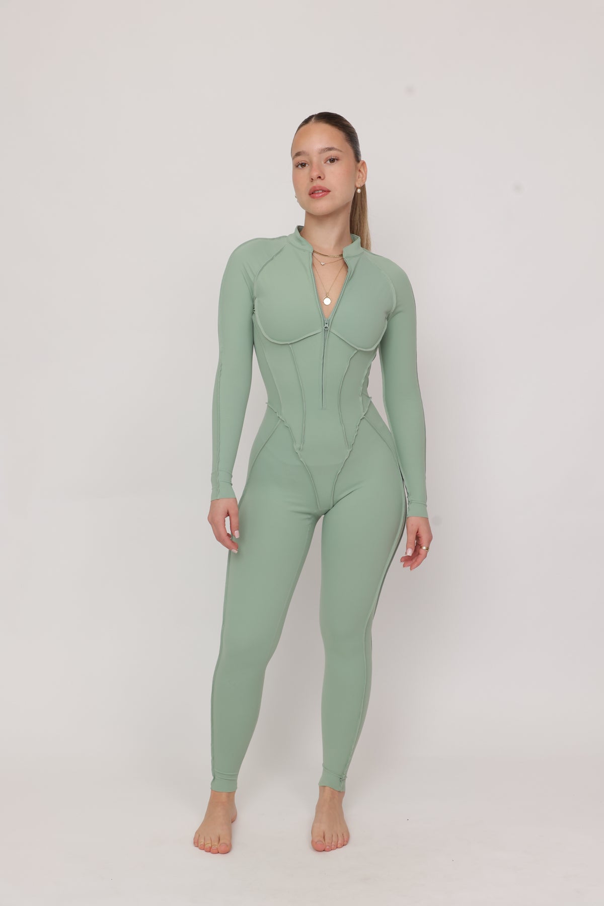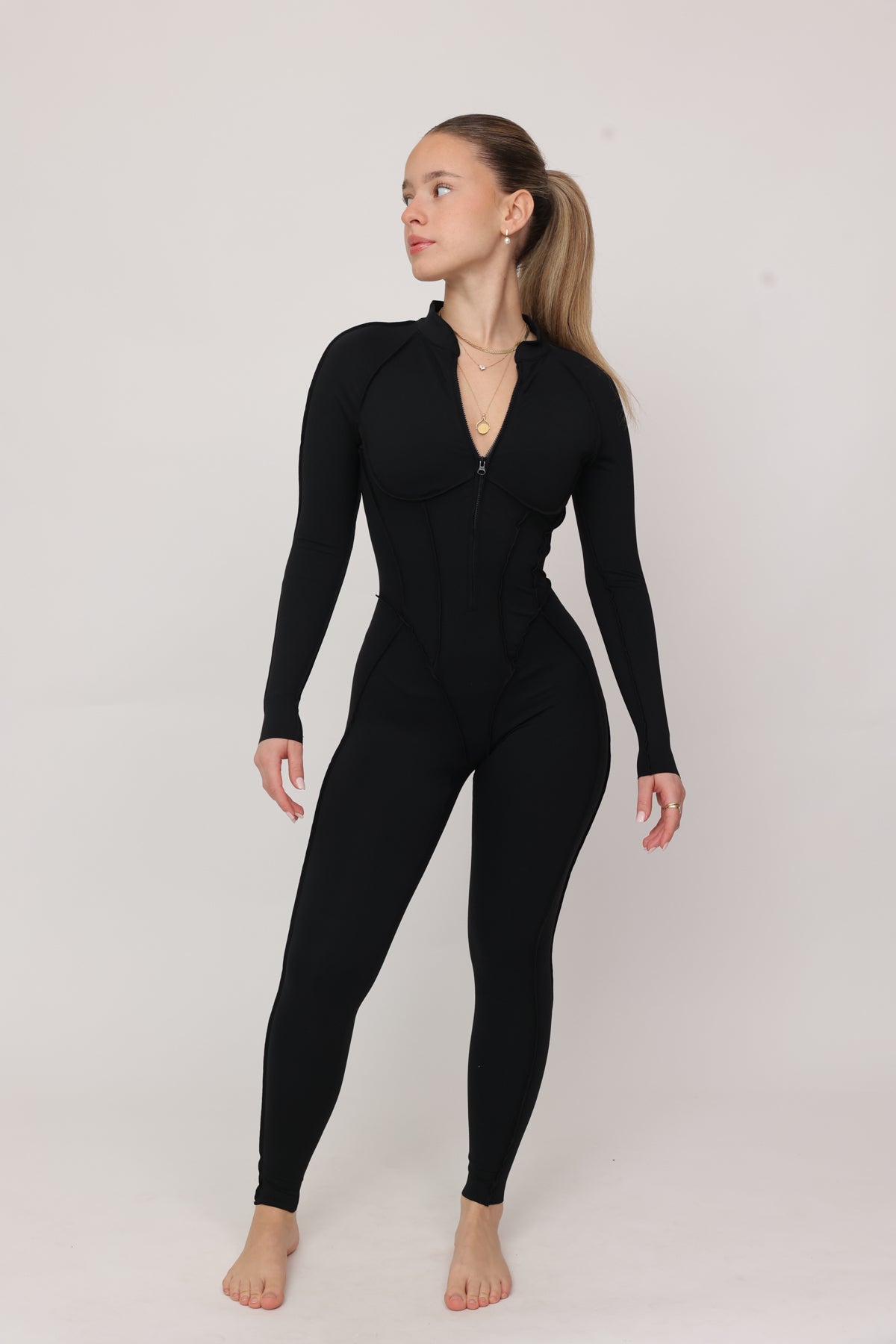 - אוברול ארוך בגזרה מושלמת עם תפרים בולטים